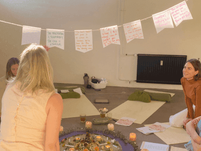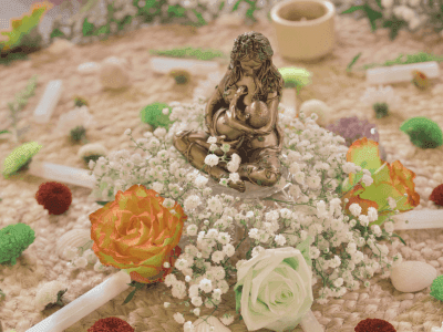 Each woman can bring something small for the birth altar. Think of small (precious) stones or feathers.